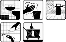 Kullanım Alanları : Sıhhi alanlardaki enamel, seramik, alüminyum, pirinç, krom, paslanmaz çelik, sentetikmateryaller ve emayeden imal edilmiş; küvet, banyo teknesi, tuvalet klozeti, çerçevelibölmeler, ayna, karo ve benzeri tüm suya dayanıklı yüzey ve objelerde kullanıma