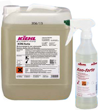 Xon-forte Gıda alanları için köpüklü temizleyici Özellikleri : Protein, içyağı, yanmış ya da pişmiş yemek artıkları gibi gıda birikintilerini yok eder. Xon-forte ile temizlenen ve gıda hazırlanmasında kullanılan alanlar çeşme suyu ile durulanmalıdır. Xon-forte, gıda hazırlama alanları için güvenilirliği sertifikalandırılmış bir üründür. İçindekiler : Non-iyonik yüzey etkin maddeler < 5%, sabun < 5%, fosfatlar < 5%, suda çözünebilen solventler, alkaliler, gıda boyası (Cl47005). pH-değeri (konsantre): yaklaşık 13,5 pH-değeri (kullanıma hazır solüsyon): yaklaşık 13 Kullanım Alanları : Izgara, fırın, sıcak tabak, fritöz, davlumbaz, duvar ve yer karoları gibi mutfaklarda ve gıda hazırlama alanlarında bulunan alkalilere dayanıklı tüm yüzeylerde kullanıma uygundur. Alüminyum, anotlu alüminyum ve emaye gibi alkalilere duyarlı yüzeylerde kullanmayınız. Kullanım Şekli : lk uygulamadan önce küçük bir bölgeyi materyalin alkali direncini öğrenmek için test edin. Xon-forte'yi seyreltmeden kullanın Rutin temizlik (yüzey temizliği) : Temizlenecek eşyayı (ızgara, fırın vb.) max. 30°C'ya kadar ısıtıp kapatın. Xon-forte'yi yüzeye sıkın ve 5-10 dakika etki etmesini bekleyin. Daha sonra bir bez ile ovun ve iyice durulayın. Ovalayarak kurulayın. Köpüklü temizleme : Konteynırı seyreltilmemiş ürünle doldurun. Meme pozisyonunu 1:4 ila 1:10 arası bir konuma ayarlayın. Derinlemesine temizlik : 8 litre soğuk suya 1 litre katın. Temizleme solüsyonunu zemine yayın, yaklaşık 10 dakika etki etmesini bekleyin. Daha sonra ovun ve kirli solüsyonu vakumladıktan sonra temiz suyla iyice durulayın. Sprey şişesini 10 litrelik bidondan tekrar doldurun. Uyarı : Kiehl ürünün usule uygun olmayan kullanımı ve bundan doğacak zararlar için hiçbir sorumluluğu kabul etmez.