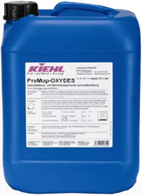 ProMop® OXYDES Temizlik tekstillerinin hazırlanması için dezenfeksiyon ve ağartıcı bileşimi Özellikleri : ProMop OXYDES, temizlik tekstilleri için dizayn edilmiş, mükemmel ağartma özelliğine sahip bir dezenfektandır. Geniş antimikrobiyal spektrumu sayesinde, ProMop OXYDES 60°C derecelik yıkama sıcaklığında Alman Uygulamalı Hijyen Birliği (VAH) tarafından öngörülen hijyen şartlarını yerine getirir. Ürün, yakın bir zamanda VAH dezenfektan listesinde yerini alacaktır. Temizlik takviye ürünleri ProMop WASH-ULTRA ya da ProMop CLEAN ile birlikte kullanılarak yapılan ağartma işlemleri, lifleri korur ve kusursuz derecede temiz ve hijyenik temizlik tekstilleri sağlar. ProMop OXYDES, bakım evleri ve hastanelerdeki personel ve hastalar için vazgeçilmez enfeksiyon prolifaksi ürünüdür. İçindekiler : 100 gramında: 25 gr hidrojen peroksit, 5 gr perasetik asit. Sair içerik: asetik asit. pH-değeri (konsantre): yaklaşık 1 pH-değeri (kullanıma hazır solüsyon): yaklaşık 3,5 Kullanım Alanları : Tüm alkalilere dayanıklı ve ağartılabilir temizlik tekstillerinin kemotermal dezenfeksiyonu için uygundur (60°C yıkama sıcaklığında). Üzerinde kurumuş kan lekeleri bulunan tekstiller için uygun değildir. Kullanım Şekli : Paspasların ve silme bezlerinin 60°C derece sıcaklıkta yıkanmasında ProMop- WASH-ULTRA ve ProMop-WASH veya ProMop-CLEAN ile birlikte kullanılır. ProMop-OXYDES kutusunu ana yıkama modunun deterjan bağlantısına takın. Ürün, çamaşır makinesinin program kontrol ünitesi tarafından otomatik olarak seyreltilecektir. Seyreltme tavsiyeleri: