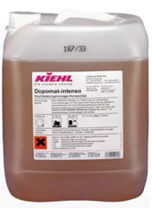 Dopomat-intenso Yüksek performanslı endüstriyel temizlik konsantresi Özellikleri : İnatçı kirleri yoketmek için dizayn edilmiş yüksek alkali içerikli endüstriyel temizlik konsantresi. Ürün yüksek temizleme performansı sayesinde; endüstriyel kirleri, yağ ve gres yağını çabucak söker ve hızlı bir temizleme süreci sağlar. İçindekiler : Aniyonik yüzey etkin maddeler < 5%, non-iyonik yüzey etkin maddeler < 5%, sabun < 5%, fosfatlar < 5%, suda çözünebilen solventler, NTA < 5%, alkaliler, esanslar. pH-değeri (konsantre): yaklaşık 13 pH-değeri (kullanıma hazır solüsyon): yaklaşık 11,5 Kullanım Alanları : Suya ve alkalilere dayanıklı tüm endüstriyel zeminlerde kullanıma uygundur. Kullanım Şekli : İlk uygulamadan önce küçük bir bölgeyi test ediniz. Rutin temizlik (mekanik ıslak temizleme) : Kirlerin yoğunluğuna göre 30-100 ml ürünü 10 litre soğuk suyla seyreltin. Temel temizlik : Kirlerin yoğunluğuna göre 100-200 ml ürünü 10 litre soğuk suyla seyreltin. Uyarı : Kiehl ürünün usüle uygun olmayan kullanımı ve bundan doğacak zararlar için hiçbir sorumluluğu kabul etmez.