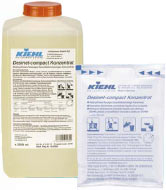 Desinet-compact Konsantre Aldehid içermeyen likit dezenfektan temizleyici konsantresi Özellikleri : Desinet-compact Konsantre, yüzey dezenfeksiyonu için uygun bir temizleme ve dezenfektasyon ajanıdır. Ürün, aldehidler, fenoller ve metal organik aktif maddeler içermez ve Alman Hijyen ve Mikrobiyoloji Derneği tarafından onaylanmıştır. Desinet-compact Konsantre, kokusuzdur, aktif temizler ve pürüzsüz bir şekilde kurur. Gram-positif ve gram-negatif bakterilere, mantarlara karşı etkilidir ve HIV, HBV, HCV gibi sarılı virüslere karşı virüsidaldır. İçindekiler : 100 gramı için aktif madde miktarları: 7.0 gr didesil dimetil amonyum klorid 12.0 gr N-(3-amino-prophyl)-N-dodesil propan-1.3-diamin 10.0 gr 1-fenoksipropan-2-ol/2-fenoksipropanol Sair içerik: Non-iyonik yüzey etkin maddeler 5-15%, suda çözünebilen solventler. pH-değeri (konsantre): yaklaşık 9,5 pH-değeri (kullanıma hazır solüsyon): yaklaşık 7,5 Kullanım Alanları : Hastaneler, huzur evleri ve bakım evlerindeki, koğuş, yoğun bakım ünitesi, enfeksiyon tedavi ünitesi, ameliyat odası, banyo, tuvalet, sıhhi oda, duş ve giyinme odası gibi suya dayanıklı yüzey, zemin, tavan ve eşyaların olduğu tüm mekanlarda kullanıma uygundur. Kaplamalı zeminler için de uygundur. Dezenfektan temizliğinden önce linolyum zeminler kaplanmalıdır.. Kullanım Şekli : Hijyen ve dezenfektan temizliği / dezenfektan ana temizliği / Yüzey temizliğ : Deri ile temas etmemesine dikkat ediniz! Lastik eldivenler giyiniz! Seyreltme: İstenen miktarda Desinet-compact Konsantre poşetini açınız (alttaki tabloya bakınız) ve soğuk suya katınız. Boş poşetlerin ağzını iyice kapatınız. Dezenfektan temizliğinde yüzeyin iyice ıslatılmış olduğundan emin olunuz (en az 10 ml / m²). Ekipmanları suyla iyice temizleyiniz. Dökülen konsantreyi hemen temizleyiniz. Temiz suyla durulayınız. Hacim oranları ile belirtilen uygun seyreltme ve etki süreleri için aşağıdaki tabloya bakınız. |